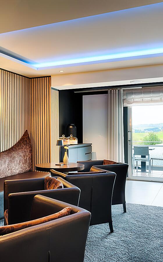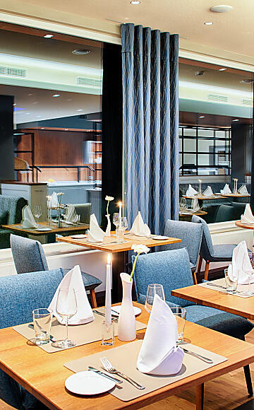 Subtle shades of blue, gray, and green, candlelight, and lovingly arranged plates: In our restaurant in Gerolstein, we welcome you with a relaxed and cozy atmosphere. To complement our dishes, we are happy to serve fine selections from our wine cellar, followed by a regional digestif, such as our Eifelgeist or Eifeler Williams pear brandy from Gerolstein. Feeling hungry yet? Then reserve your table now or look forward to a tasteful end to your vacation day!